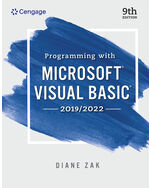 Teach your students to master the fundamentals of effective programming as they work through Visual Basic 2019 and 2022's latest features with PROGRAMMING WITH MICROSOFT VISUAL BASIC 2019/2022, 9th edition, by bestselling technology author Diane Zak. In a succinct 13 chapters and 5 appendices, the text combines the latest concepts with hands-on instruction. Students learn how to plan and create their own Windows applications. Graphical user interface design skills, object-oriented programming concepts and planning tools such as Planning Charts, pseudocode and flowcharts are also thoroughly covered. The wealth of hands-on applications in an engaging, real-world setting makes it ideal for your introduction to programming course. New applications, timely examples and practical exercises address the varied learning styles of today's students, while MindTap offers anywhere, anytime online learning platforms.