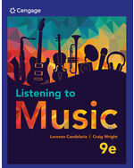Wright/Candelaria's LISTENING TO MUSIC, 9th EDITION, is designed to help develop and refine the listening skills of your students and to inspire a lifelong appreciation of music. Throughout the book, students are guided through some of the most iconic musical compositions, not only to identify musical elements, but also to enjoy them. Organized chronologically, the text discusses musical examples from every era in its social context, describing each piece's construction as well as its culture. Wright/Candelaria's LISTENING TO MUSIC, 9th EDITION, is fully integrated with MindTap to get students to truly listen to music and not just hear it. Designed to develop listening skills, the MindTap online resources include Listening Activities with streaming music, listening quizzes, test banks with audio clips, and Directed Listening Guides that visually represent the musical composition while providing detailed analysis.