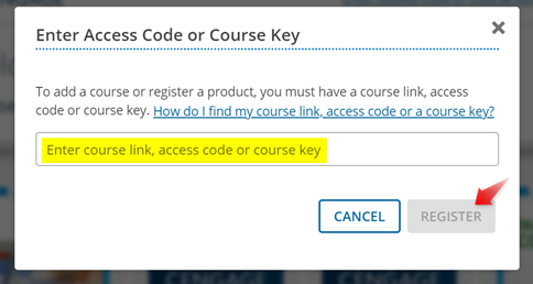 Your screen will refresh to open your student dashboard. Click the blue hyper link “Enter Access Code or Course Key” and enter in your course key. EXAMPLE: ABCD-1234-WXYZ